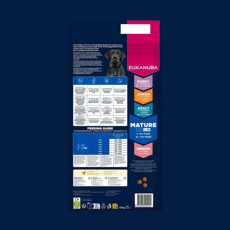 EUKANUBA droog hondenvoer voor oudere honden van grote rassen, rijk aan verse kip 15 kg