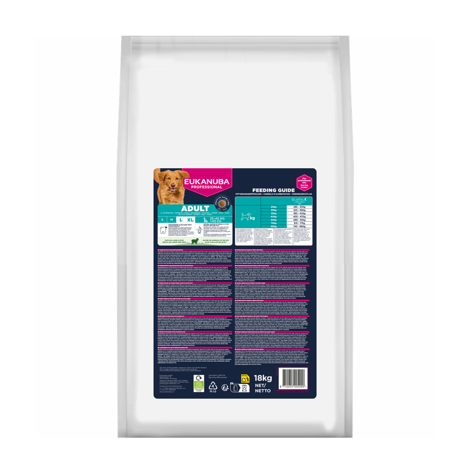 EUKANUBA droog hondenvoer voor volwassen honden van grote rassen, rijk aan lamsvlees en rijst 18 kg